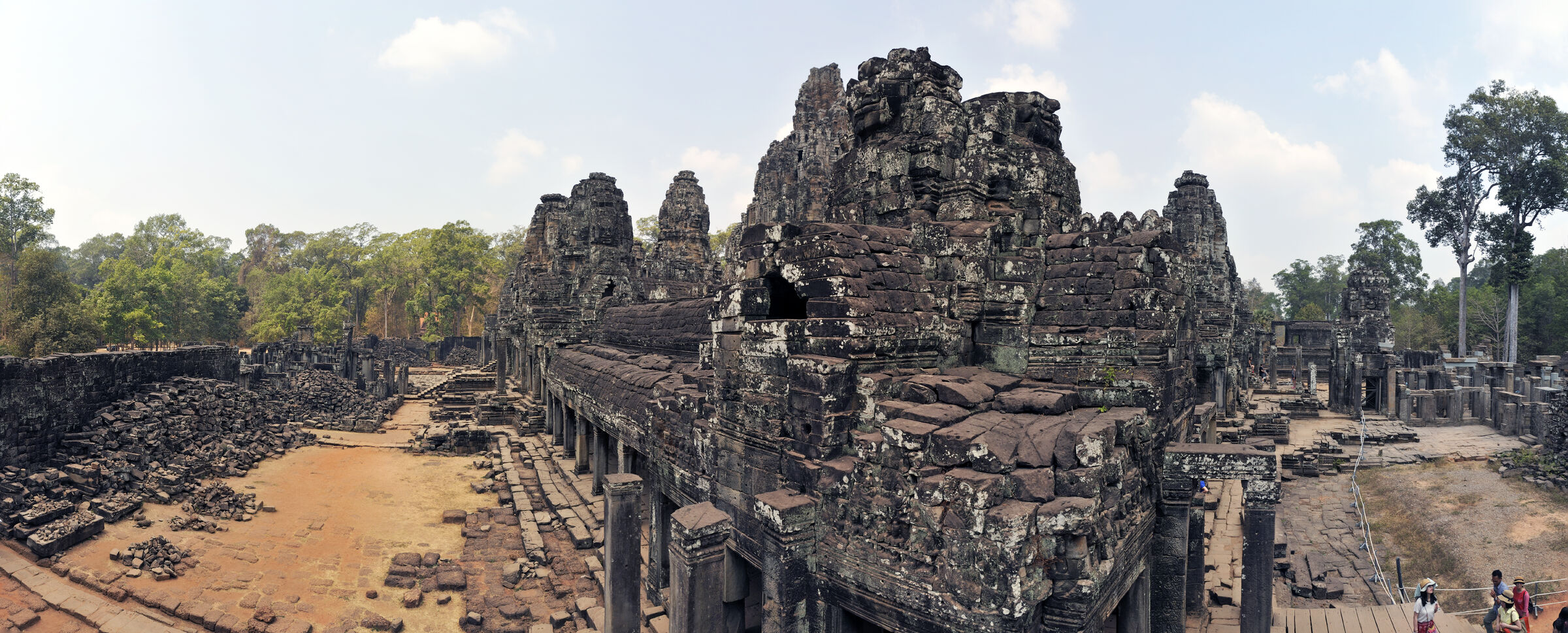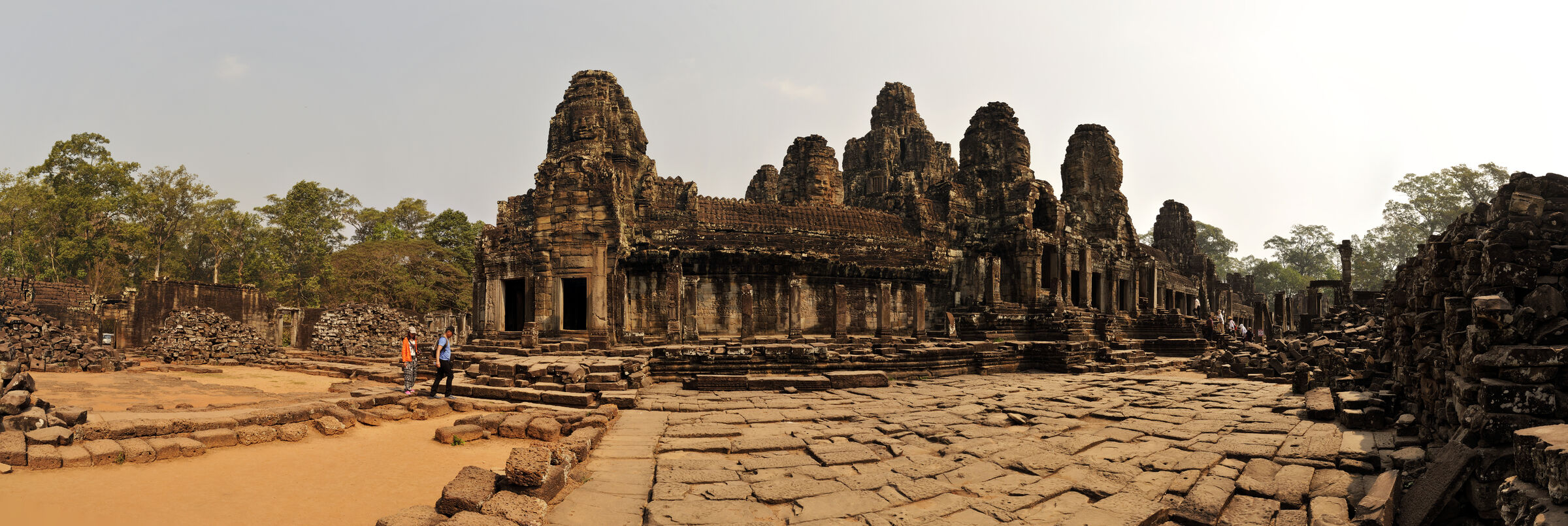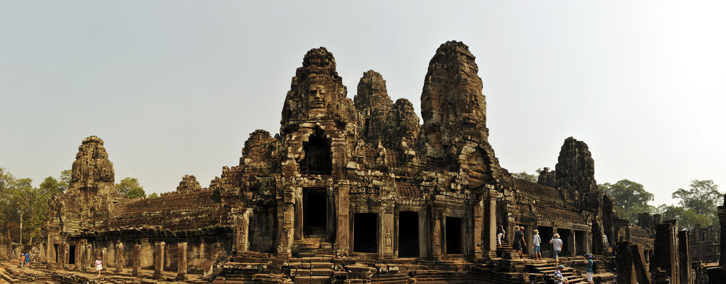 Der Bayon Tempel lag zentral in der damaligen Hauptstadt des Khmerreichs Angkor Thom und war der Haupttempel. Berühmt ist die Anlage wegen der meterhohen lächelnden Steingesichtern des Bodhisattva Lokeshvara an den Türmen. Die Khmer waren zur damaligen Zeit Anhänger sowohl des Hinduismus als auch des Buddhismus. Das zentrale Heiligtum des Tempels war dem Buddha geweiht.