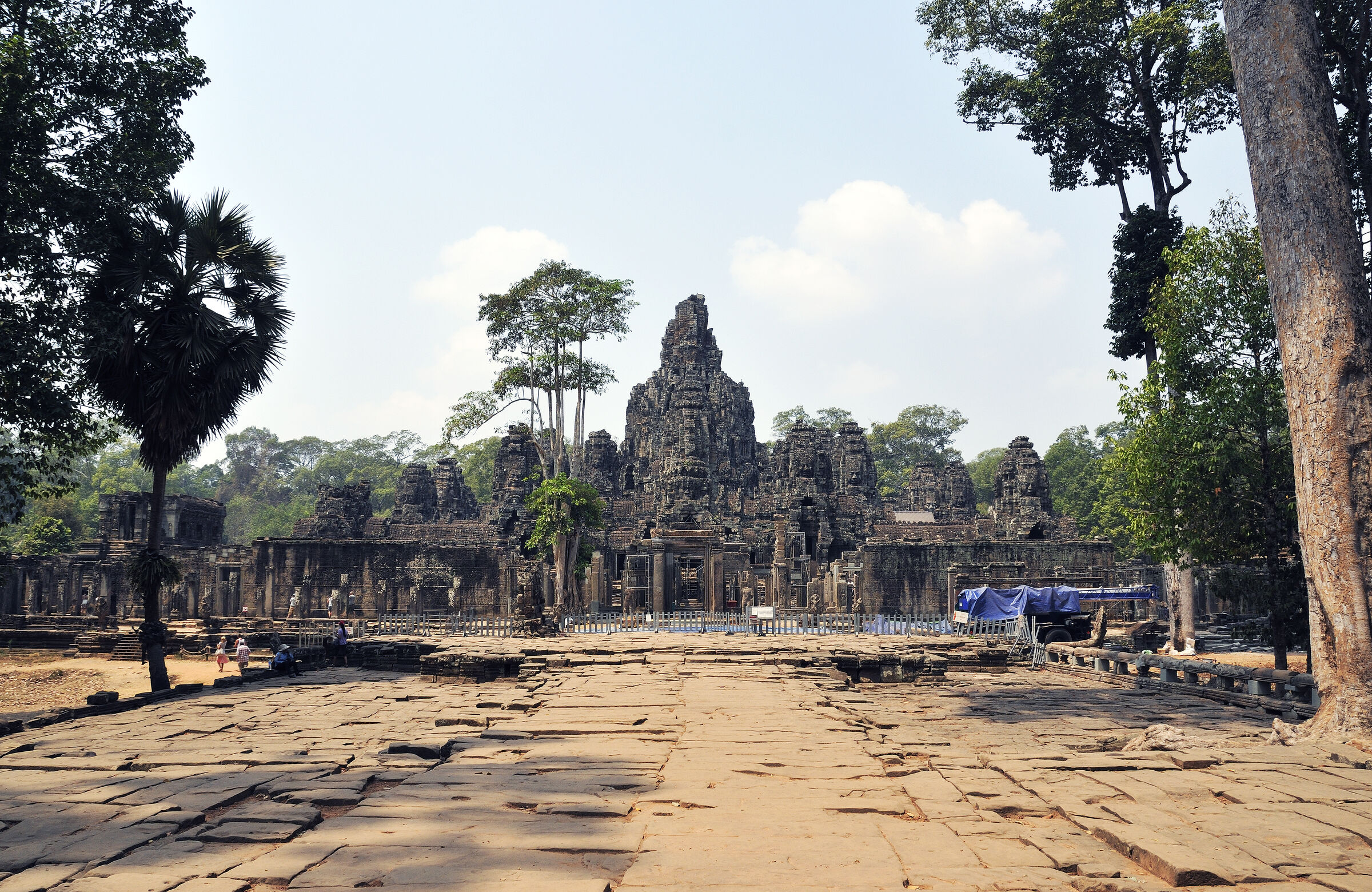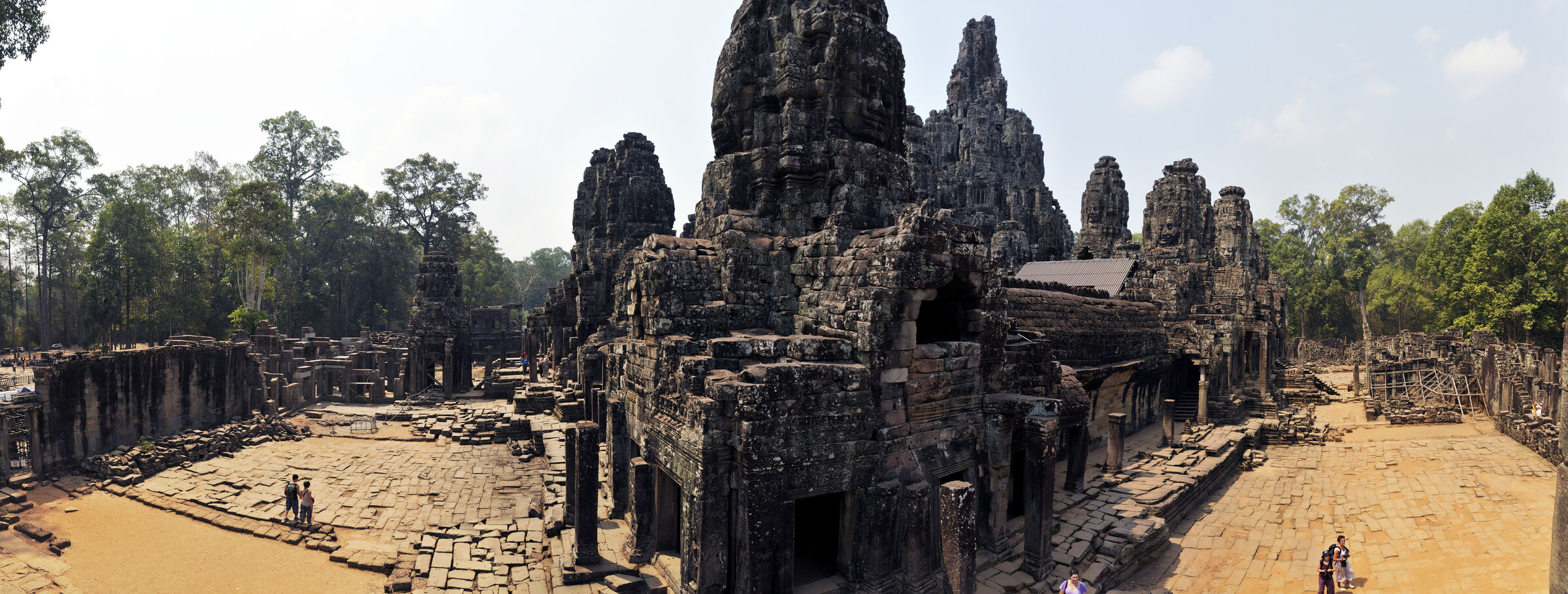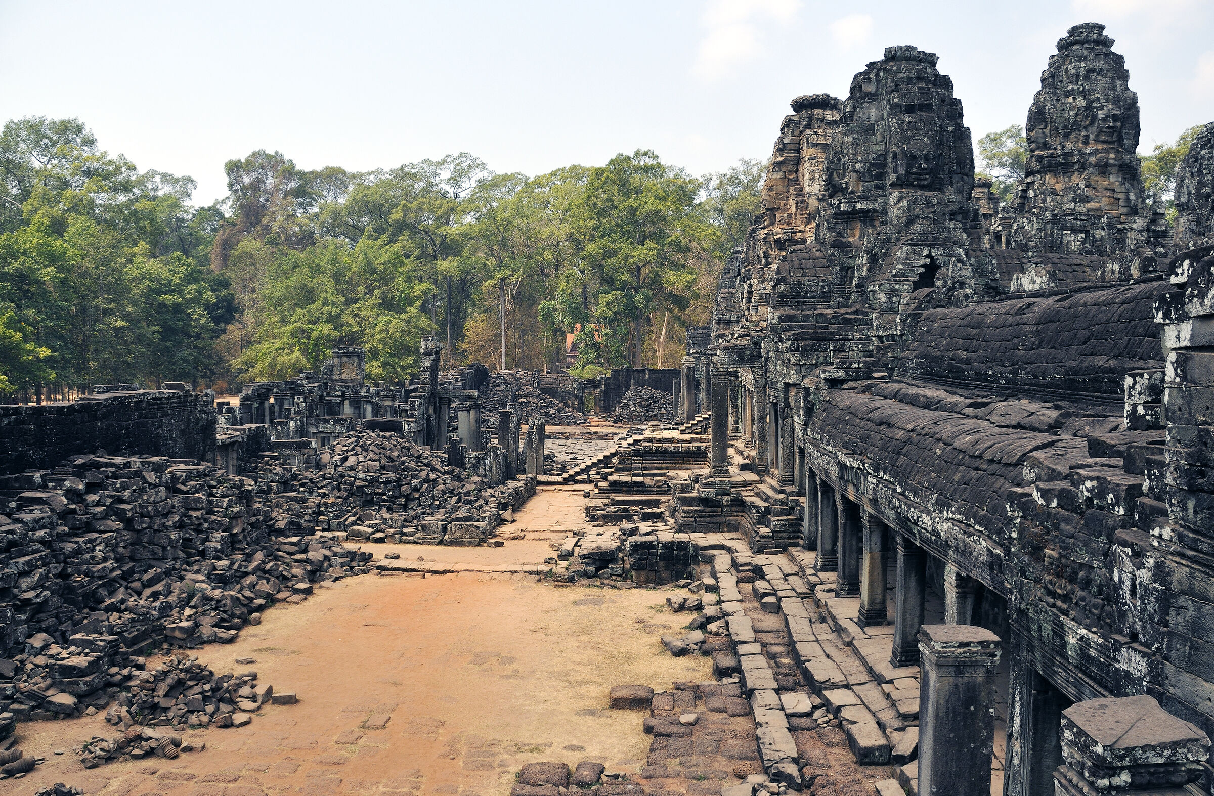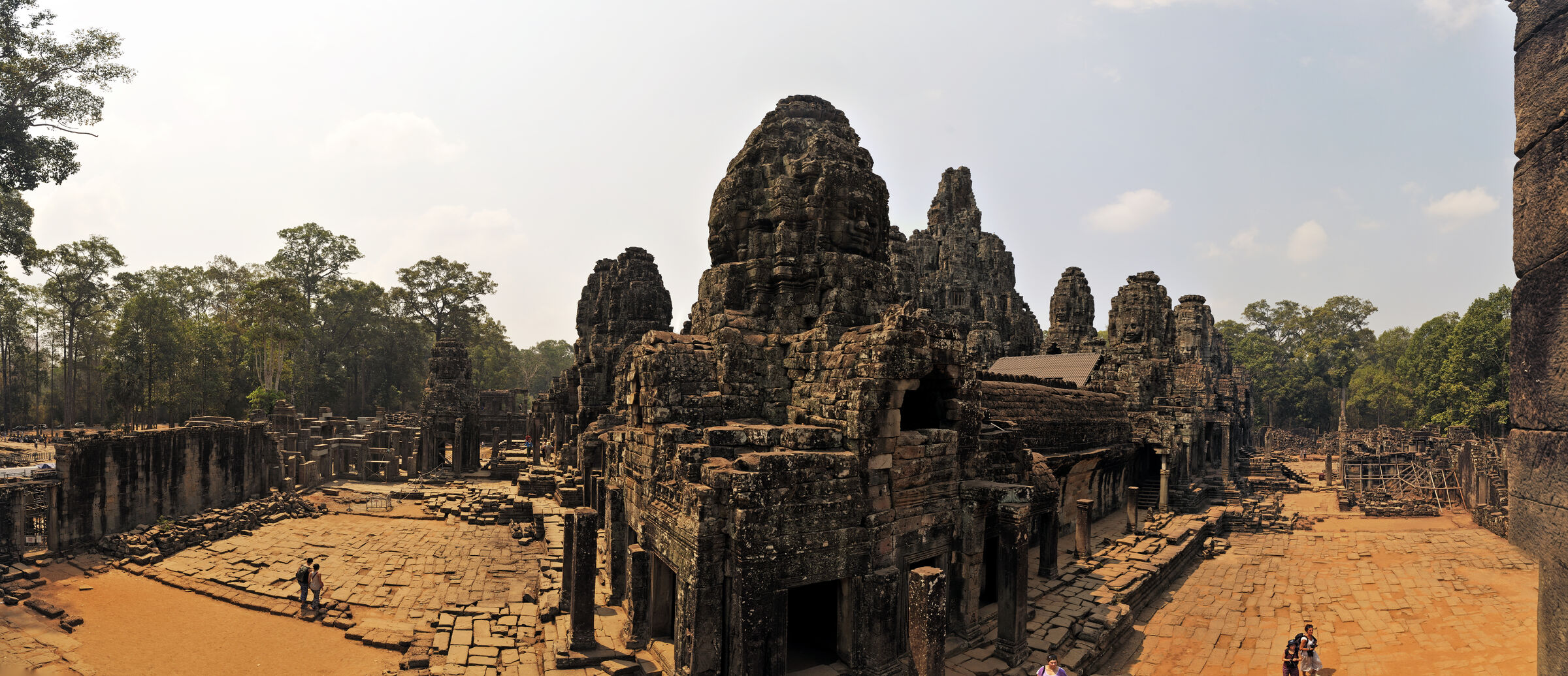 Der Bayon Tempel lag zentral in der damaligen Hauptstadt des Khmerreichs Angkor Thom und war der Haupttempel. Berühmt ist die Anlage wegen der meterhohen lächelnden Steingesichtern des Bodhisattva Lokeshvara an den Türmen. Die Khmer waren zur damaligen Zeit Anhänger sowohl des Hinduismus als auch des Buddhismus. Das zentrale Heiligtum des Tempels war dem Buddha geweiht.